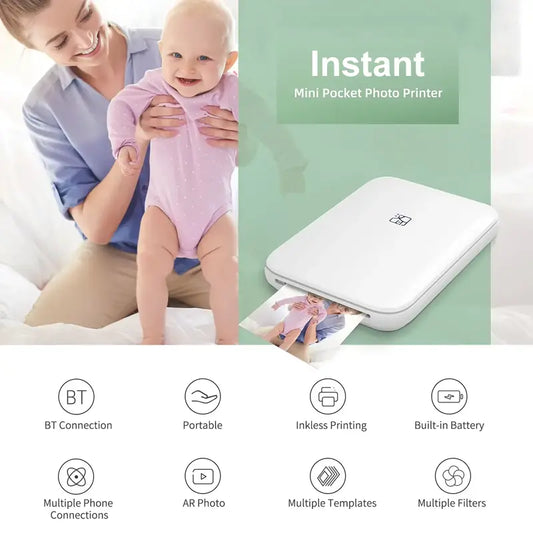 Portable Mini Photo Printer (Bluetooth/Wireless) – FREE Photo Paper Included